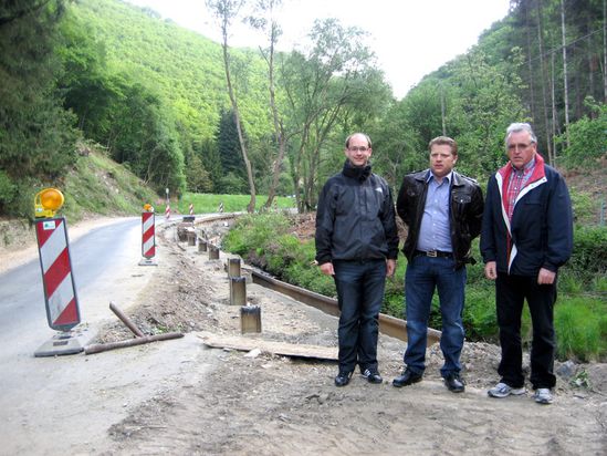 Carsten Göller, Marco Jost und Hans-Josef Kring (v.l.) erneuern bei einem Ortstermin die Forderung nach einer Ertüchtigu